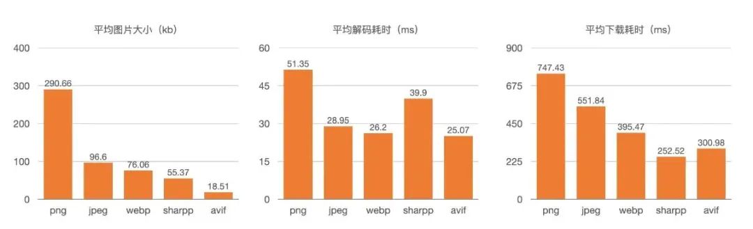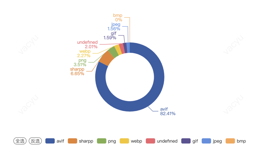 根据搭建的看板数据,我们也对比了 AVIF 和其他类型图片的数据: