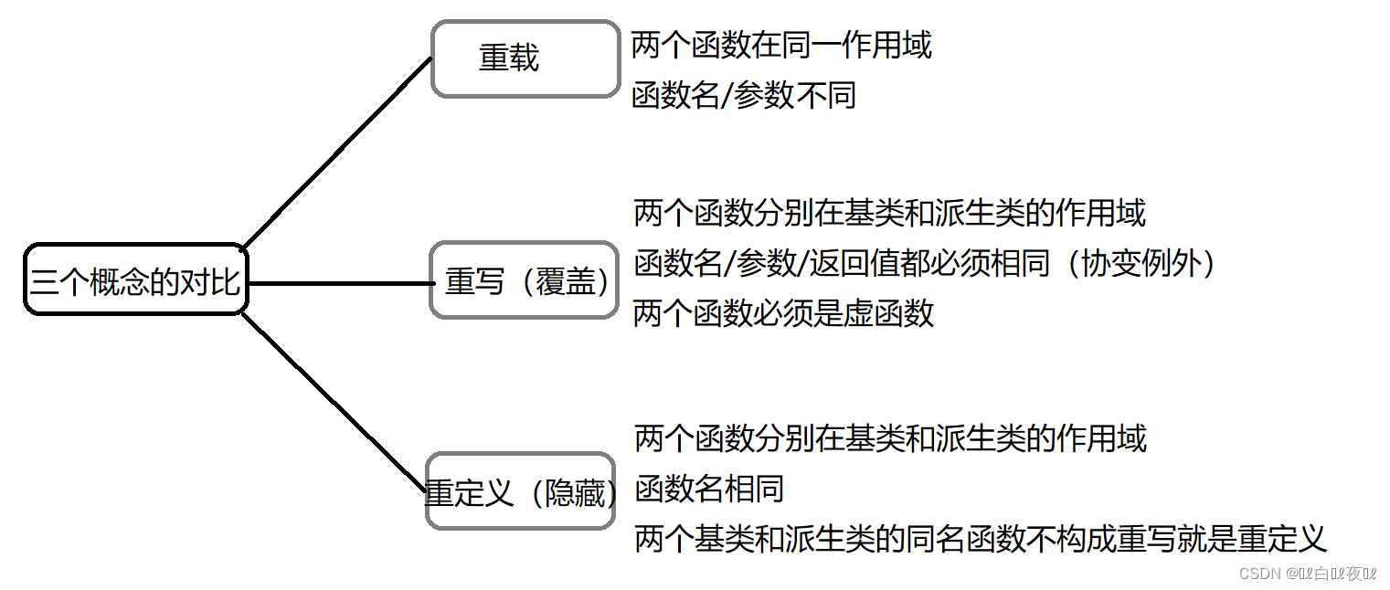 不过这里建议都加上virtual。 协变: 三同中,返回值可以不同,但是要求返回值必须是一个父子类关系的指针或者引用。
