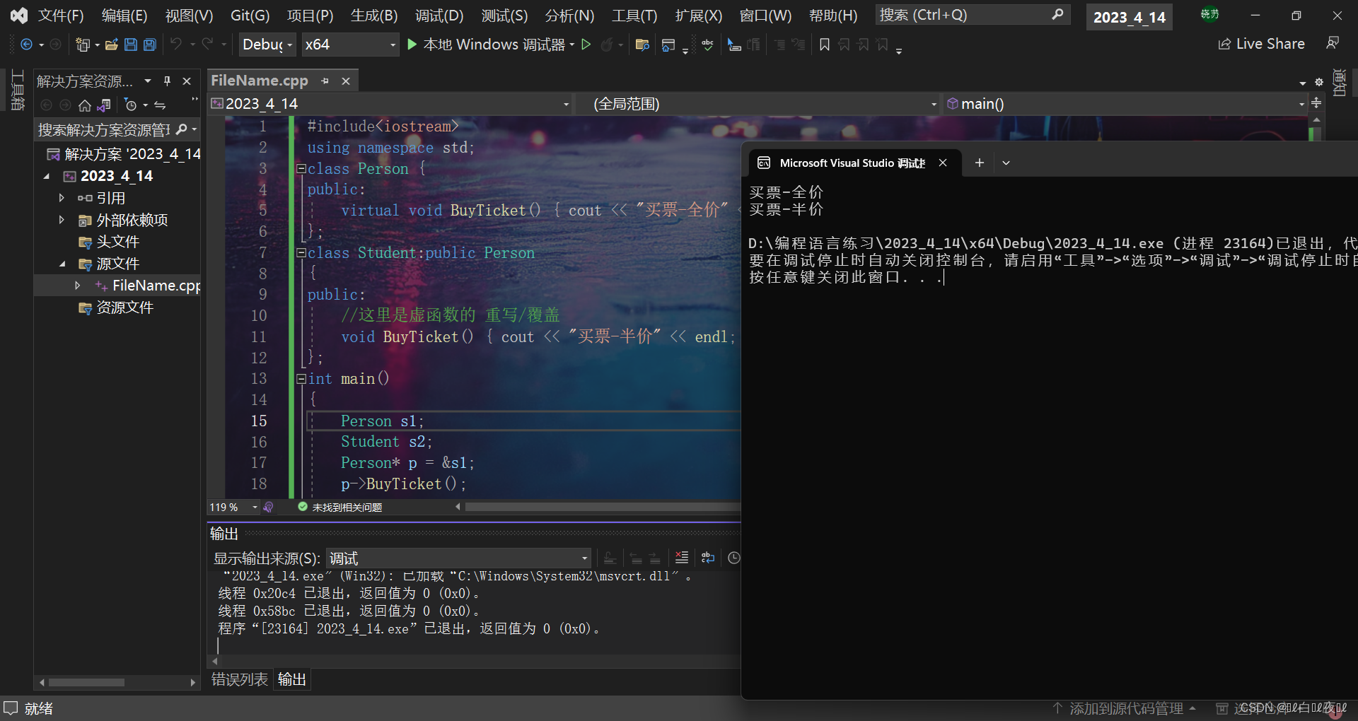 virtual void BuyTicket() { cout << "买票-半价" << endl; }//条件是三同:返回值和函数名还有参数相同