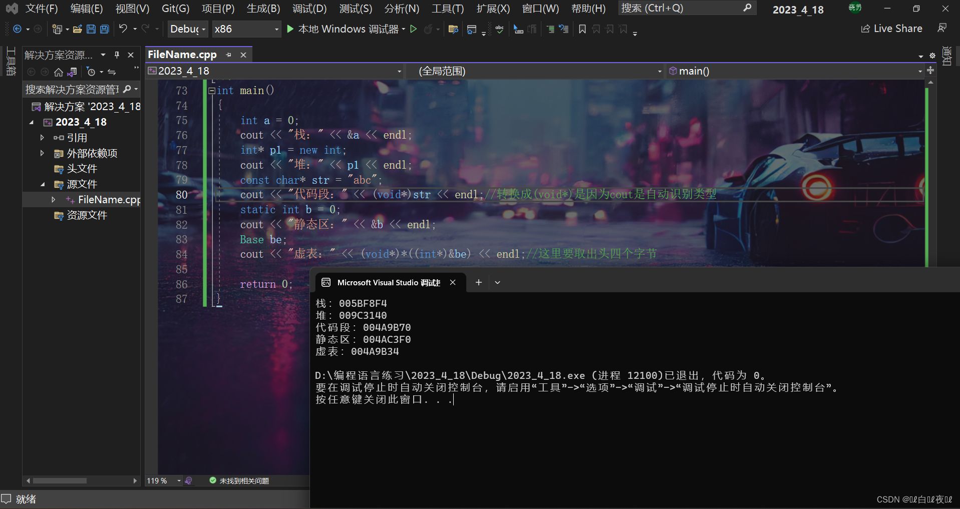 PrintVFTbale((p*)(*(int*)&b));//将虚表的地址传过去