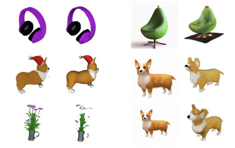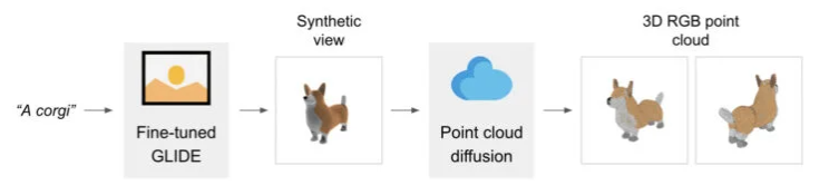 通过GLIDE模型在 A corgi 中创建一个图像,然后通过点云扩散模型创建一个3D corgi