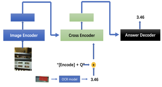 此外,盲人除了想知道眼前物体是什么及其属性是什么之外,通常还需要知道眼前物体的用途。然而盲人拍摄的画面通常是模糊、不完整的,这导致一般算法难以判断目标物体的种类及用途。因此盲人问答模型需具备更充分的常识能力,可以依据低质量图像中残缺的信息推理用户真实意图。为此,浪潮信息前沿研究团队提出了答案驱动视觉定位与大模型图文匹配结合的算法,并提出多阶段交叉训练策略。推理时,将交叉训练后的视觉定位和图文匹配模型用于推理定位答案区域;同时基于光学字符识别算法确定区域字符,并将输出文本传送到文本编码器,最终通过图文匹配模型的文本解码器得到最终答案。