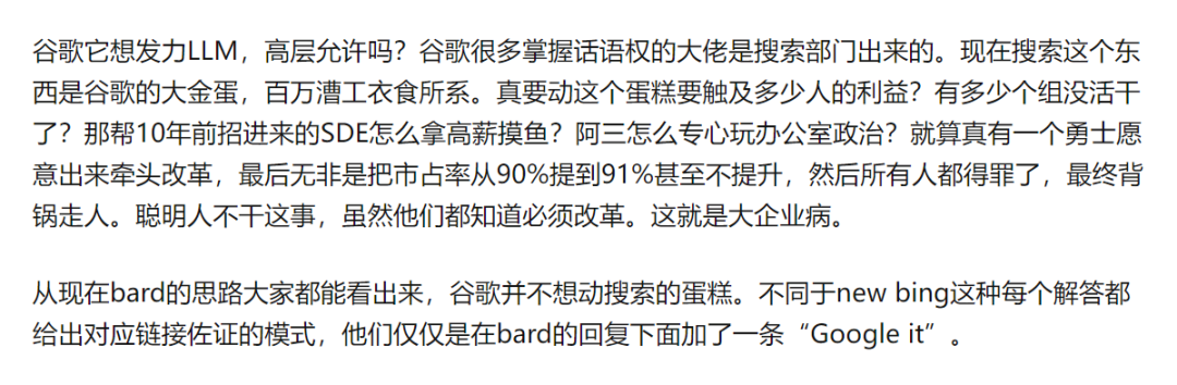 知友「飞了个猪的」点出来了谷歌作为大公司的「创新者困境」。