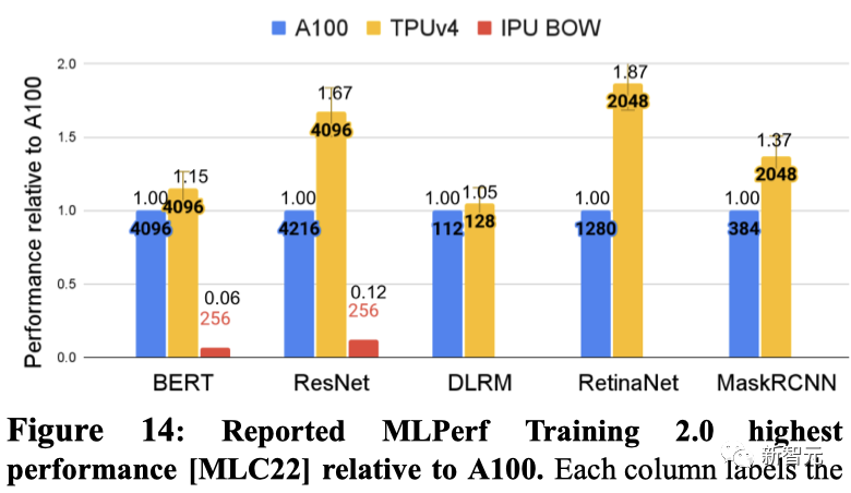 例如,尽管在峰值每秒浮点运算次数上仅具有1.10倍的优势,TPU v4在两个MLPerf基准测试上比IPU Bow在相同规模的系统上快4.3倍至4.5倍。