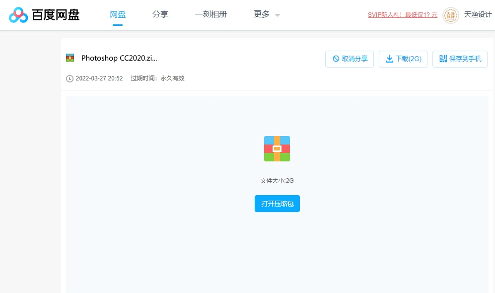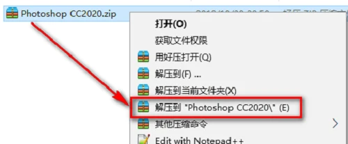 2、点击下载,等待一会儿,就可以把Photoshop2020(即PS2020)的安装包下载到本地了。3、鼠标右键解压“Photoshop CC2022”压缩文件,打开解压出来的文件夹。