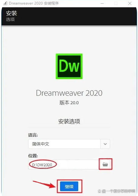 3、先点击“文件夹”小图标,修改安装路径至D盘(C盘以外的其他盘),再点击“继续”。