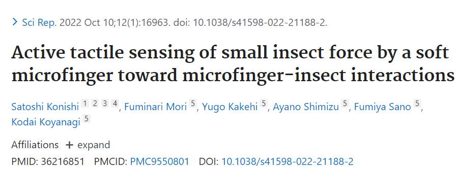 这篇论文名为《通过柔软的微指对小昆虫作用力的主动触觉感知,实现微指与昆虫的相互作用》。