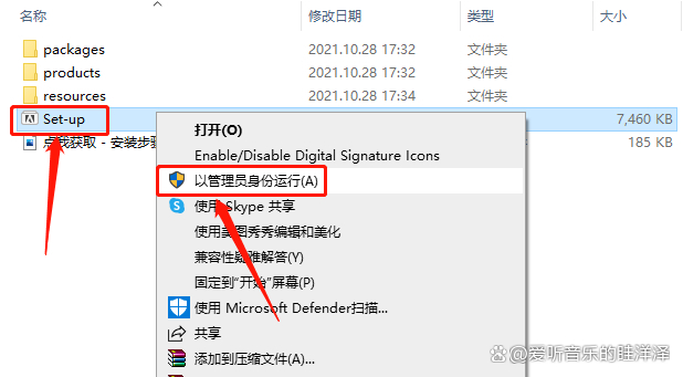 4.打开的文件夹中,鼠标右击【Set-up】安装程序,选择【以管理员身份运行】。