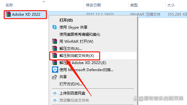 1.打开下载好的2022安装包,鼠标右击压缩包选择【解压到当前文件夹】。