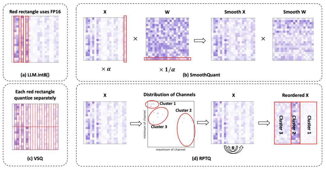 为了解决激活中通道差异的问题,作者提出了一种新颖的基于重新排序的训练后量化方法 RPTQ。