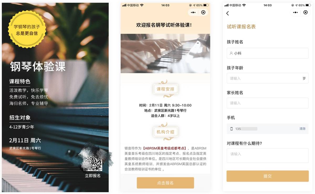 以课程报名为例,报名者扫码可查看课程介绍,填表报名: