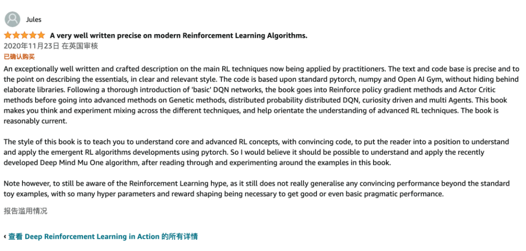 “这本书让你思考与混合应用不同的技术,并加强对强化学习技术的理解,相当新颖。我相信在通读书中的案例并进行实验之后,理解和应用最近开发的 DeepMind 算法完全有可能。”