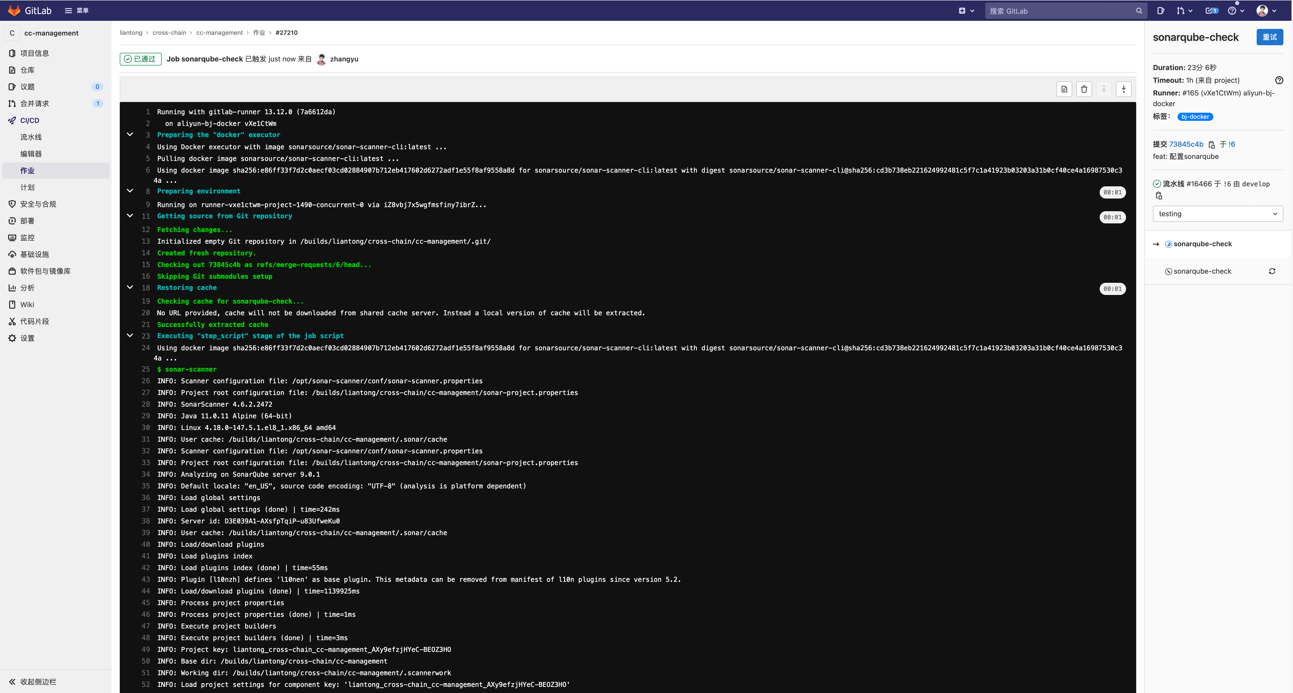 以上就是对 GitLab 仓库中现有 Go 项目配置 SonarQube 代码质量检查工具的全流程。代码质量自动化检查是开发运维规范流程中重要的环节,尤其是在团队项目中,好的规范有助于工作流的优化,提升项目的整体质量。