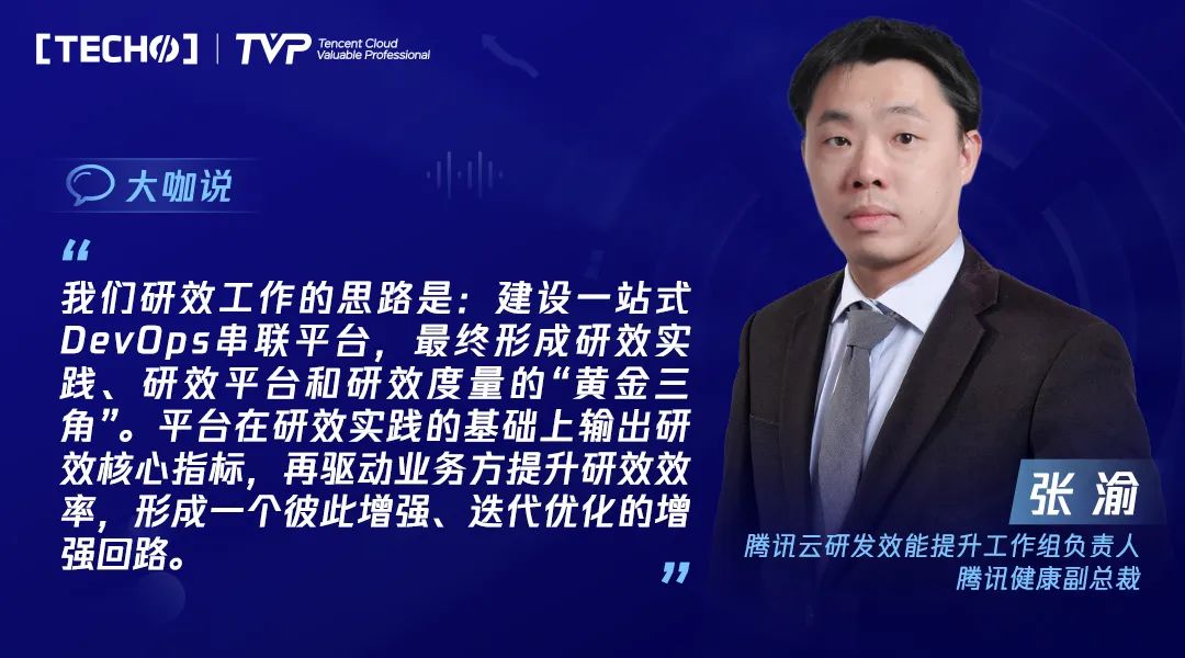 腾讯云研发效能提升工作组负责人、腾讯健康副总裁 张渝带来了《腾讯云研发效能提升及业务实践》的主题分享。