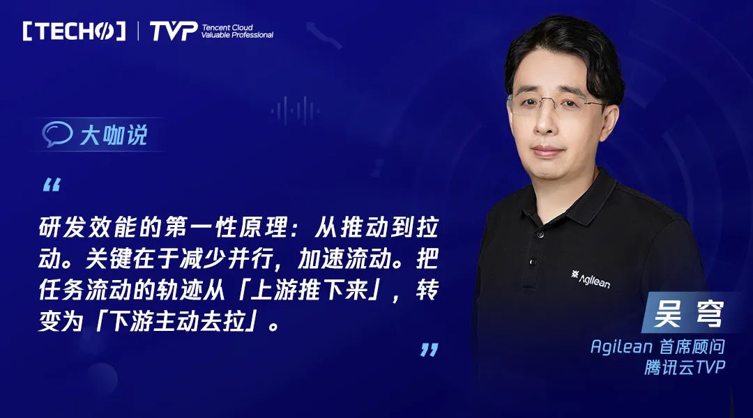 研发效能问题的本质是什么?如何实现高效的研发管理,保障产品的交付效率与质量?Agilean 首席顾问、腾讯云 TVP 吴穹带来了题为《从推动到拉动——软件研发效能的第一性原理》。