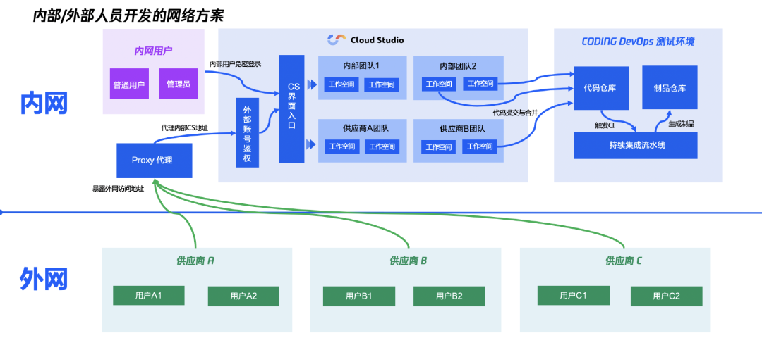 弹性是云端开发环境的优势之一,另一个优势是,可以做到云上代码不落地。