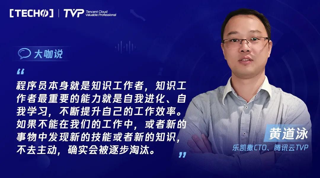 本次峰会由乐凯撒 CTO、腾讯云 TVP 黄道泳担任主持人。会议一开始,黄老师首先分享了 Techo TVP 开发者峰会的初心和宗旨——旨在通过最用心的分享、最前沿的洞察、最实际的观点,为开发者朋友献上一场“最有料、有趣、且有用”的开发者峰会。