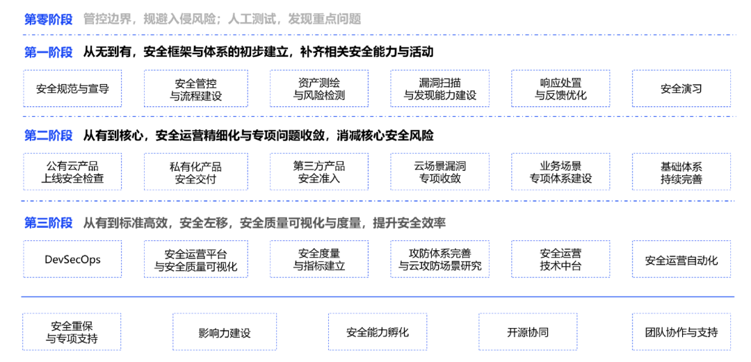 他回顾了腾讯 DevSecOps 建设的几个阶段:从外及里,由点到面,从解决问题到讲究效率。