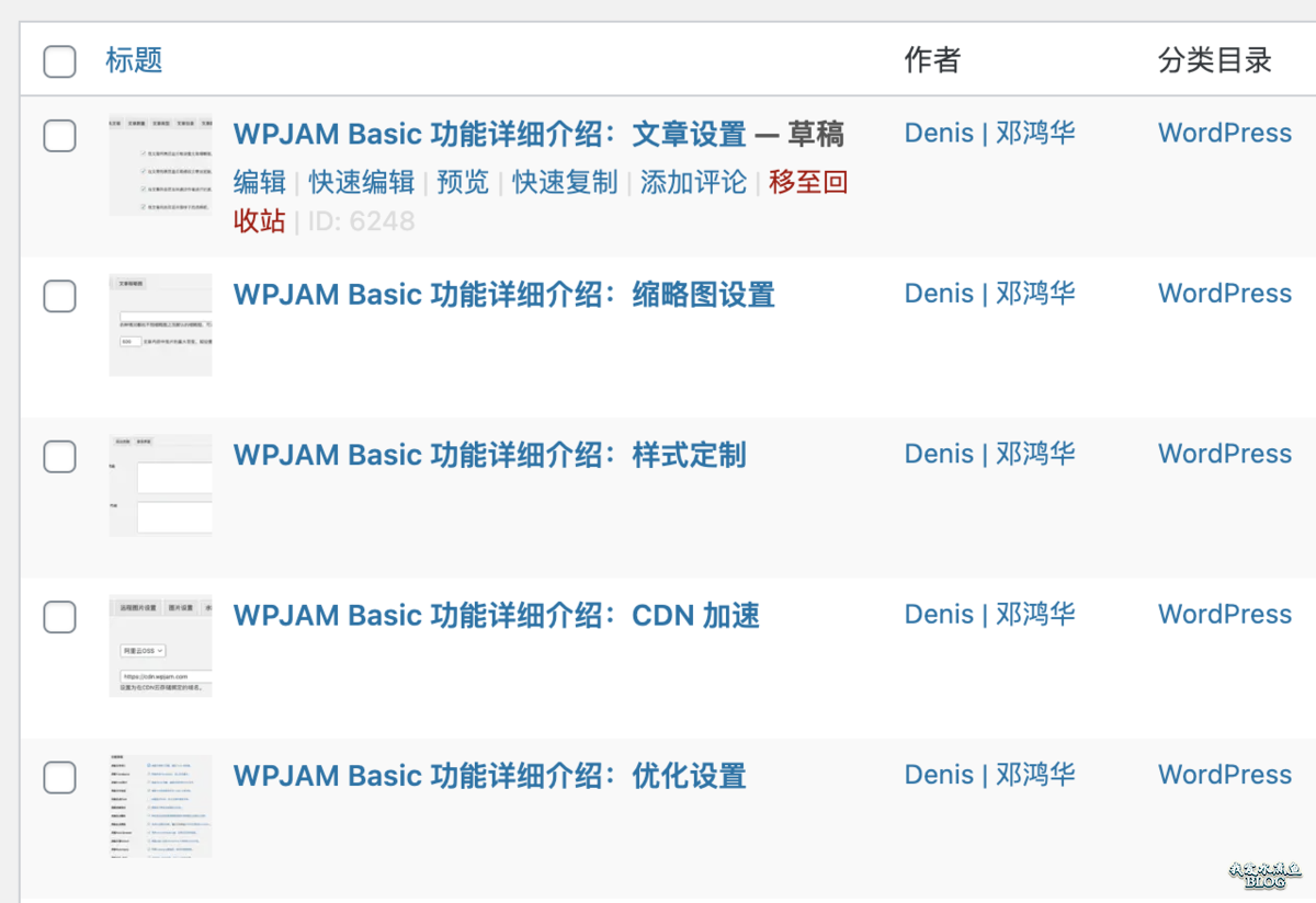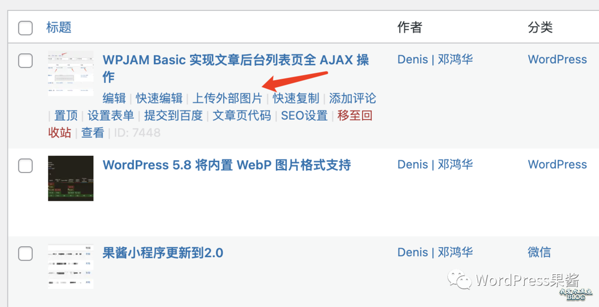 开启该功能之后,首先在后台的文章列表页能够显示文章缩略图:
