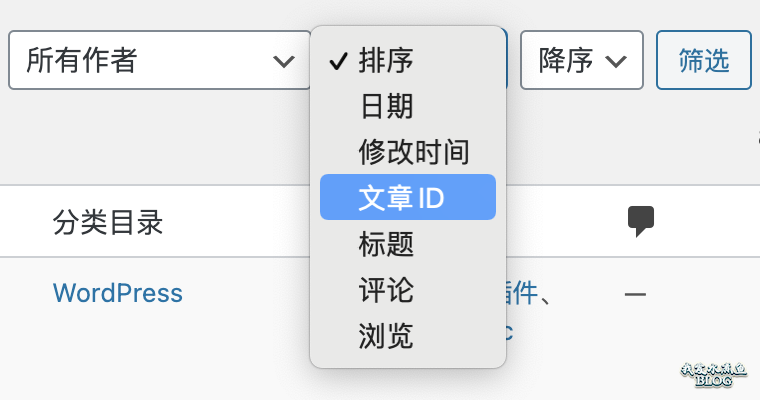 最后两个功能勾选之后,可以在文章筛选的时候,选择筛选那个作者的文章,并且还可以选择按什么排序,结合分类筛选,在进行快速检索一些文章的时候特别有效: