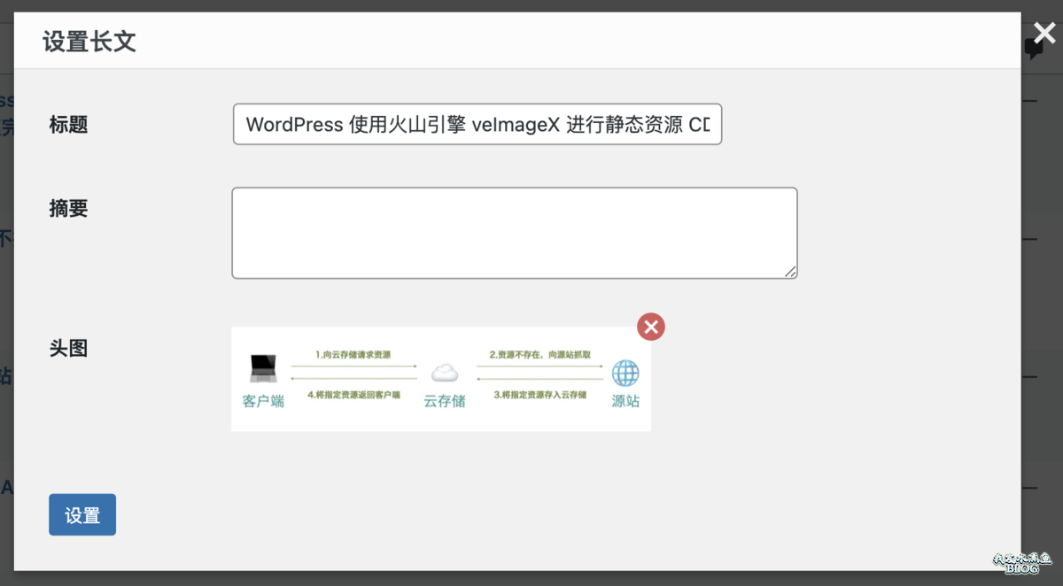 点击图片除了可以直接设置缩略图之外,还可以设置修改的标题和摘要。