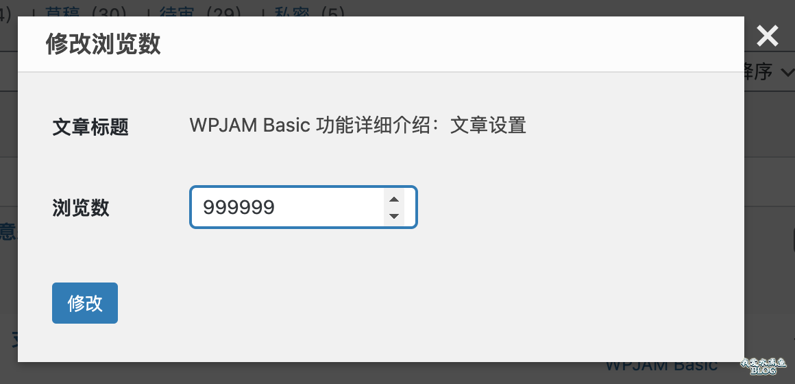 同样可以在后台文章列表页显示和修改文章浏览数: