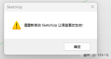 10、然后会弹出窗口提示重启生效。再重启SketchUp即可。
