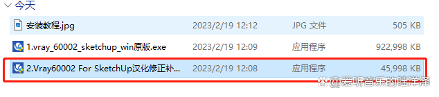 6、接下打开下载的激活程序,双击2.Vray60002 For SketchUp汉化修正补丁.exe打开,如果弹出警告对话框点击运行