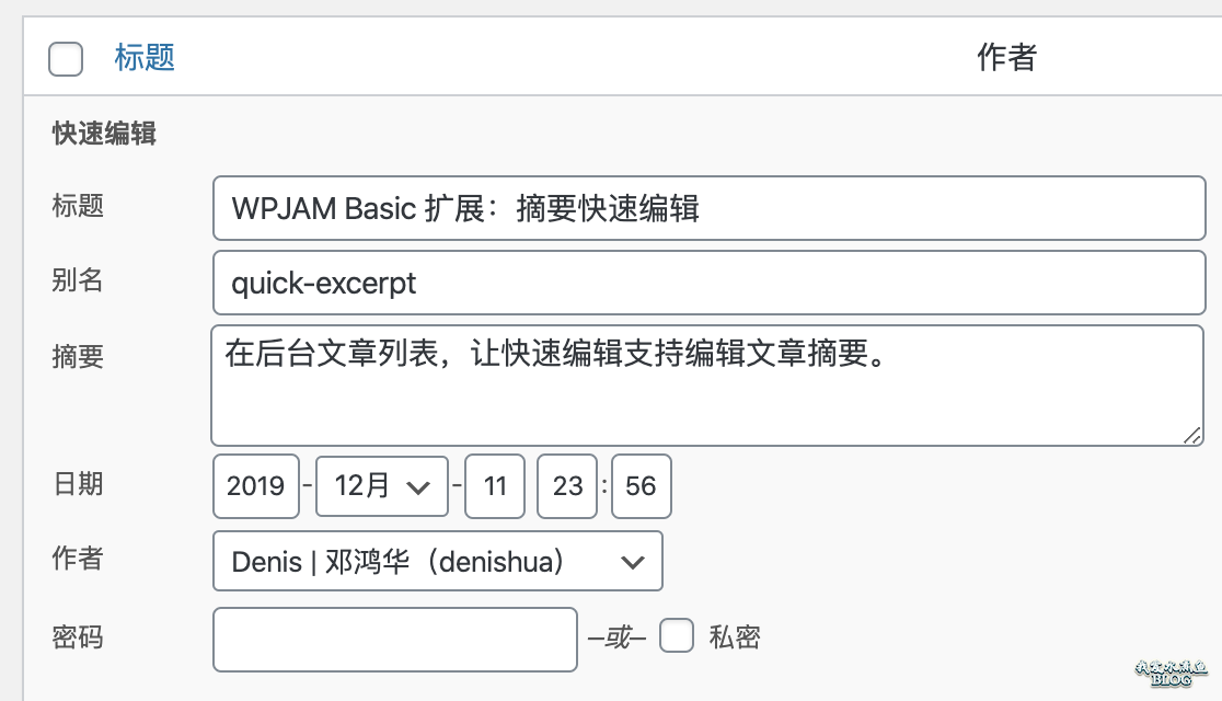 WPJAM Basic 插件支持一键屏蔽古腾堡编辑器,此外 WPJAM Basic 还提供一个扩展「摘要快速编辑」,让你可以在文章列表快速设置文章摘要: