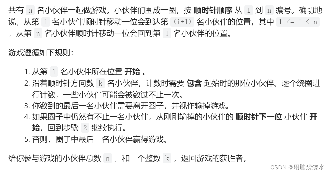 // 循环队列,指向k-1个后的小盆友(k-1是因为计数时需要包含起始时的那位小伙伴)
