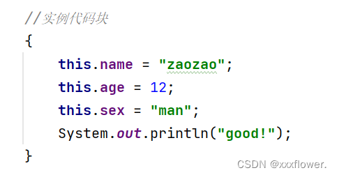 构造块:定义在类中的代码块(不加修饰符)。也叫:实例代码块。构造代码块一般用于初始化实例成员变量。