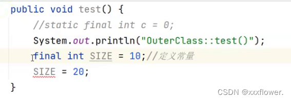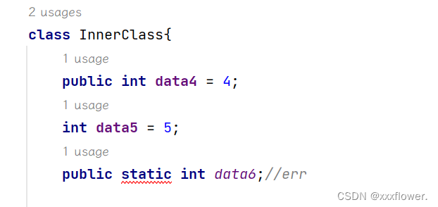 2.实例内部类当中不能有静态的成员变量,非要定义,那么只能是被static final 修饰的
