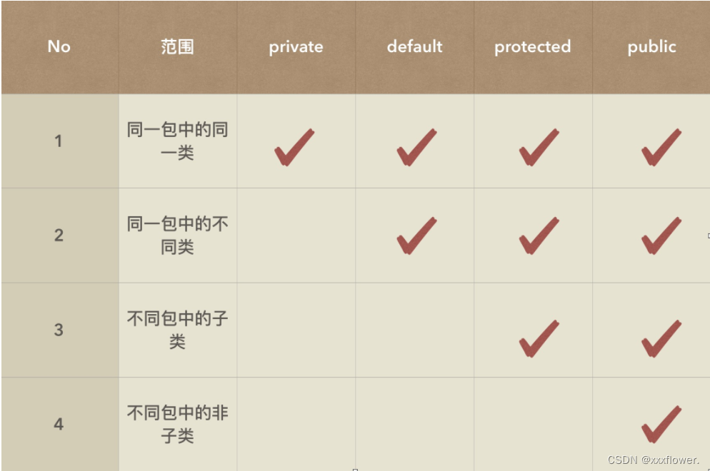 比如: public:可以理解为一个人的外貌特征,谁都可以看得到 default: 对于自己家族中(同一个包中)不是什么秘密,对于其他人来说就是隐私了 private:只有自己知道,其他人都不知道 【注意】: default权限指:什么都不写时的默认权限 访问权限除了可以限定类中成员的可见性,也可以控制类的可见性 这些访问修饰限定符,只是在权限上进行了限制