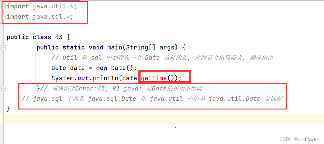 如果需要使用 java.util 中的其他类, 可以使用 import java.util.* 比如前面我们学习数组时使用 Arrays.toString(arr);时要导入import java.util.Arrays; 建议显式的指定要导入的类名. 否则还是容易出现冲突的情况.比如: