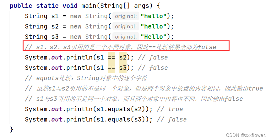 System.out.println(s1 == s3); // false