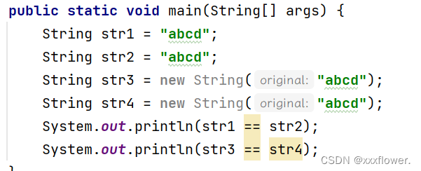 System.out.println(s3 == s4); // false