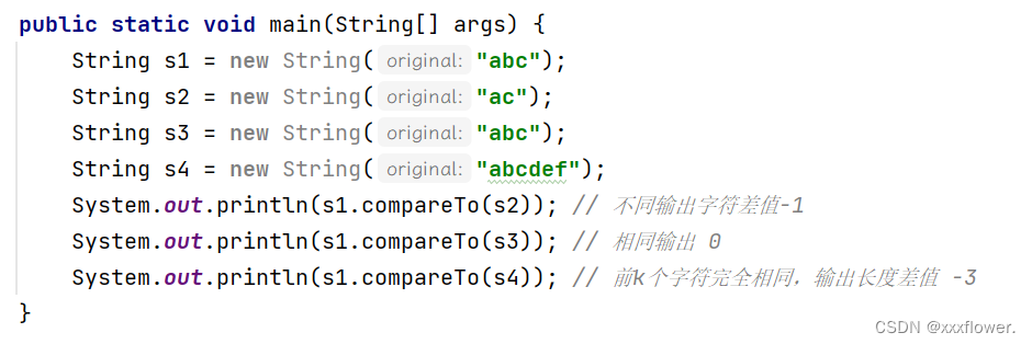 3. int compareTo(String s) 方法: 按照字典序进行比较