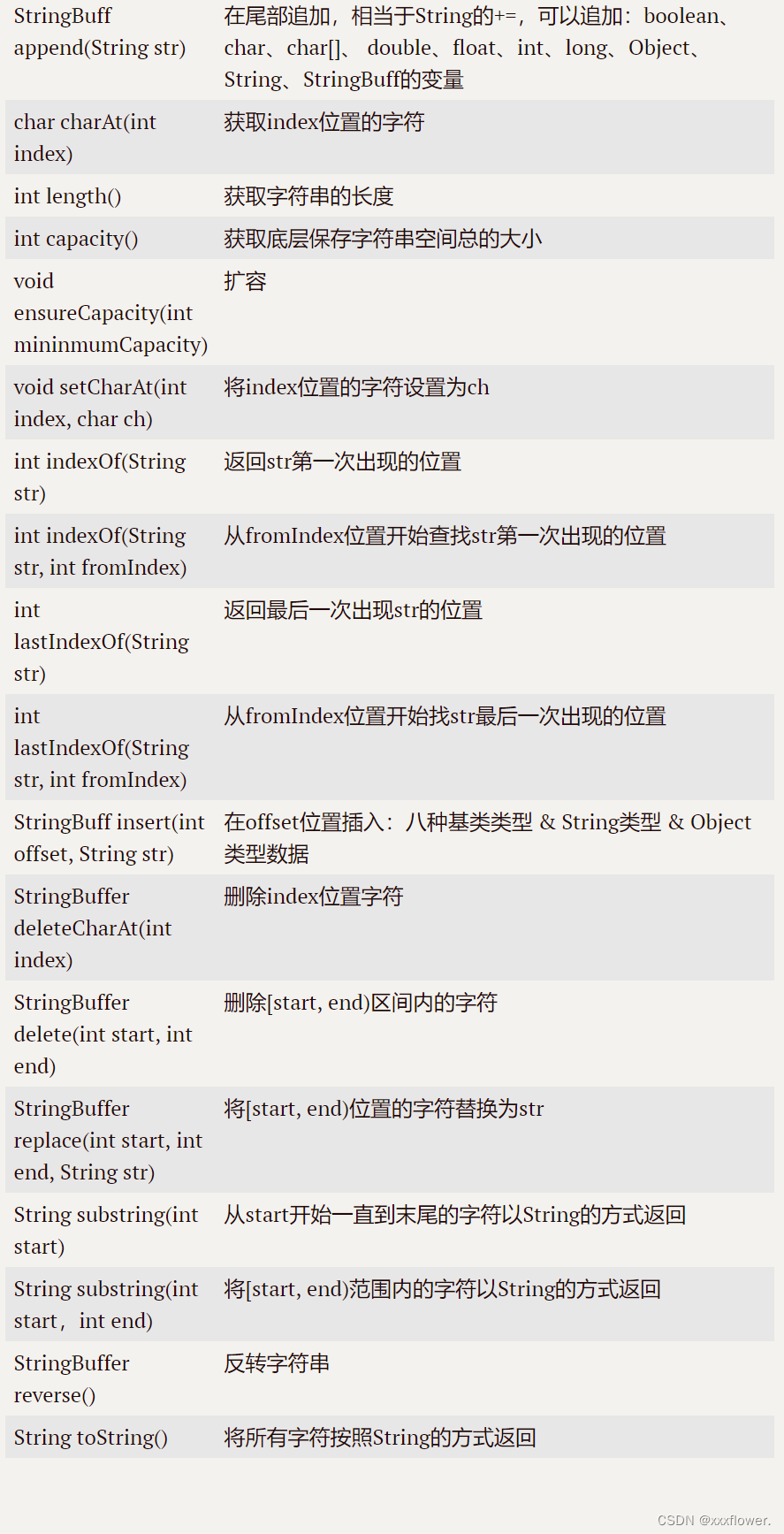 由于String的不可更改特性,为了方便字符串的修改Java中又提供StringBuilder和StringBuffer类。这两个类大部分功能是相同的。