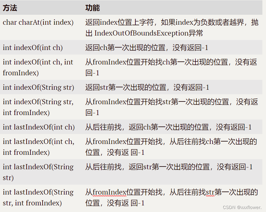 字符串查找也是字符串中非常常见的操作,String类提供的常用查找的方法: