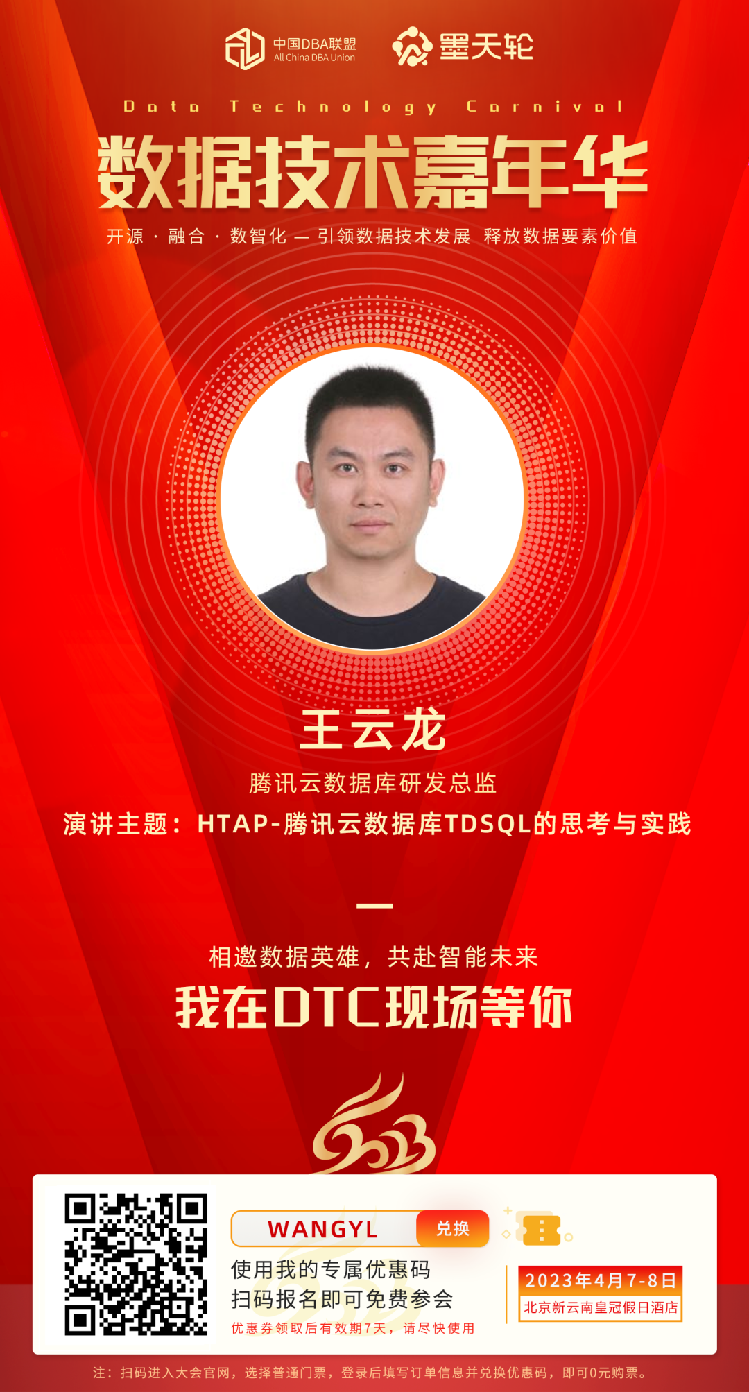 4月8日下午《融合创新:HTAP数据库技术》专场,腾讯云数据库研发总监王云龙会带来题为《HTAP:腾讯云数据库TDSQL的思考与实践》的分享。主讲TDSQL关于“如何在一个系统、一套数据的基础上实现TP和AP的产品能力融合,并且实现对客户使用成本最小化”方面的思考和实现。