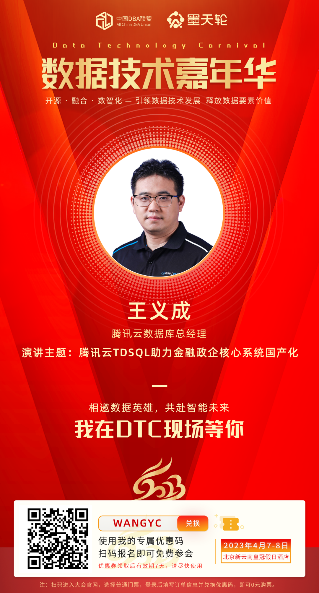 4月7日主论坛,腾讯云数据库总经理王义成将带来《腾讯云TDSQL助力金融政企核心系统国产化》主题分享,重点介绍传统金融用户的核心业务系统进行国产化替换的技术难点、需求及系统改造的实战过程。