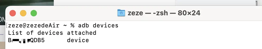 adb devices此时手机会弹出调试弹窗,点击允许(最好勾上一直允许),此时电脑终端显示没检测到,因为他检测的时候我们还没点上允许,所以需要在输入一遍