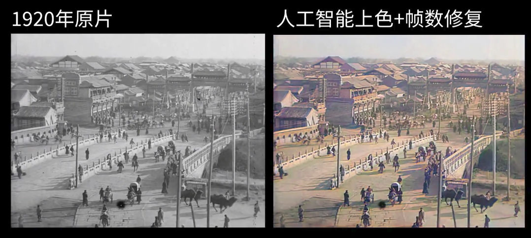 近日,一段拍摄于 100 年前的老北京城影像被央视转发,在微博上火了。据了解,该视频出自一位 B 站的 UP 主大谷的游戏创作小屋。作者大谷利用 AI 技术,把一段拍摄于 1920 年的北京城黑白视频,渲染成了高清流畅的彩色视频,配以颇具地方特色的 BGM,还原了百年前老北京城的民风民俗,颇有内味。