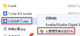 9.返回之前解压的“V-Ray6.0 for SketchUp2019-2022”文件夹,找到并选中“2.汉化补丁.exe“,鼠标右键选择“以管理员身份运行”
