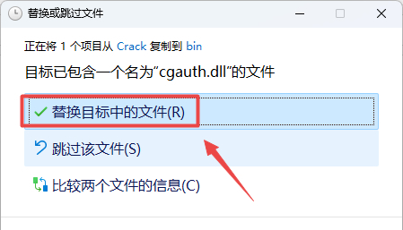 14.点击“替换目标中的文件“(若提示需要权限,点击继续)