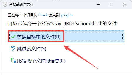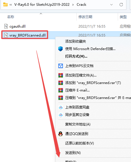 15.返回打开的“Crack”文件夹,选中“vray_BRDFScanned.dll”文件,鼠标右键选择“复制”