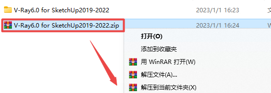 1.选中下载的压缩包,然后鼠标右键选择解压到“V-Ray6.0 for SketchUp2019-2022”