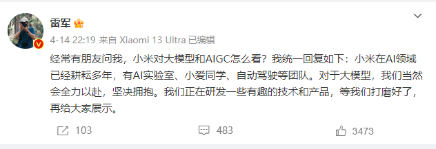 雷军称,此前曾多次被问及对于大模型和AIGC的看法。