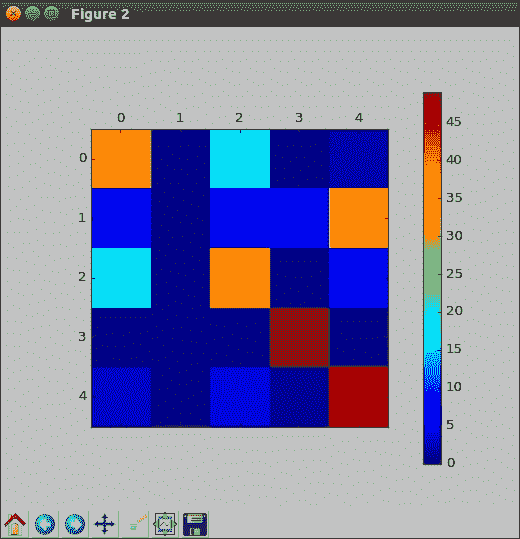 它具有36x36像素外加 1 倍乘以 5 类总权重,即我们需要训练的 6,485 个参数。 经过 1,000 次训练后,此模型的验证准确率达到了 40%。 您的结果可能会有所不同。 这相对较差,但是该模型具有一些优势。